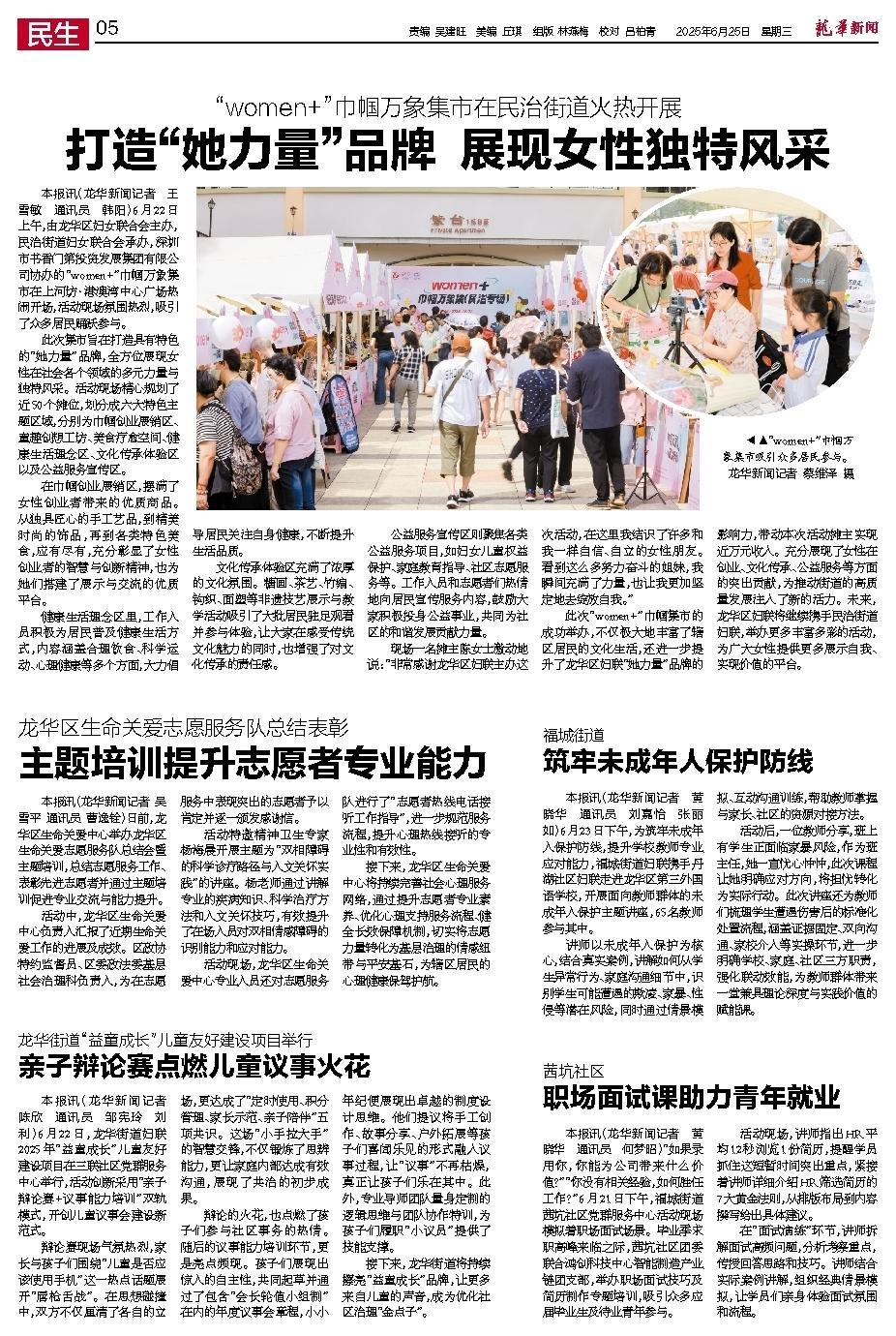 本报讯(龙华新闻记者 王雪敏 通讯员 韩阳)6月22日上午,由龙华区妇女联合会主办,民治街道妇女联合会承办,深圳市书香门第投资发展集团有限公司协办的“women+”巾帼万象集市在上河坊·港澳湾中心广场热闹开场,活动现场氛围热烈,吸引了众多居民踊跃参与。