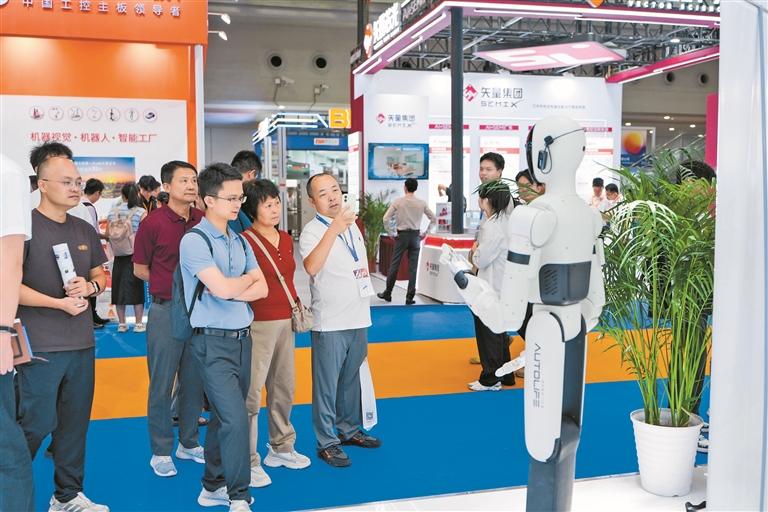 在福田会展中心2号馆,以“科技蓝”为主体的龙华展区格外亮眼,来自智动未来的“autolife s2”机器人作为龙华展区导览助手,为大家提供播报服务。据该公司市场部工作人员吴薇介绍,此款机器人搭载大模型,具备智能交互能力,27个身体自由度具有超强灵活性,续航10小时,支持导航自动回充,目前应用在酒店、商场等场景,能运用80多种语言,可为客人带来非常好的接待体验。