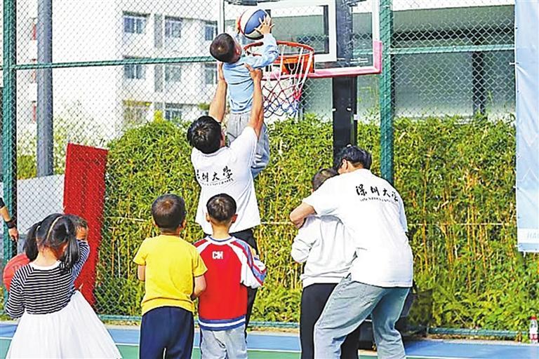 深圳大学体育学院志愿者为特需儿童开展“一起跃动”体育训练课。