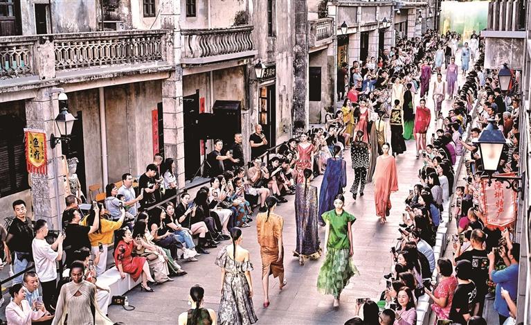 近日,中国社交服饰女装品牌“15 HOURS”在观澜古墟上演2024春夏新品发布秀,以古墟的百年历史文化为基调,通过服装传递优雅精致、自信悦己的时空跨界之魅。龙华新闻记者 蔡维泽 摄