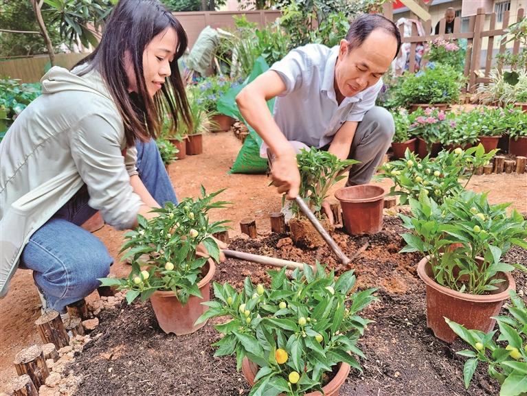 据介绍,茜坑社区“半亩田园”亲邻之家提升改造得益于福城街道城管科的共建花园项目,通过融入共建花园元素,“半亩田园”变成邻里的诗和远方。经过改造,120平方米的“半亩田园”亲邻之家扩大到450平方米,设置种植体验区、自然科普区、亲邻打卡点、活动区、堆肥区、工具区等,还结合季节变化,种植各式各样的植物,为整个区域提供更丰富的景观,将“半亩田园”旁边之前的一片荒芜空地变成妙趣横生的邻里家园。记者了解到,后续茜坑将广泛挖掘发动更多的种菜、种花、园艺达人,一起参与“半亩田园”爱心种植、养护和打理。同时充分利用亲邻打卡点的颜值优势,吸引社区邻里前来体验种植、打卡拍照等。