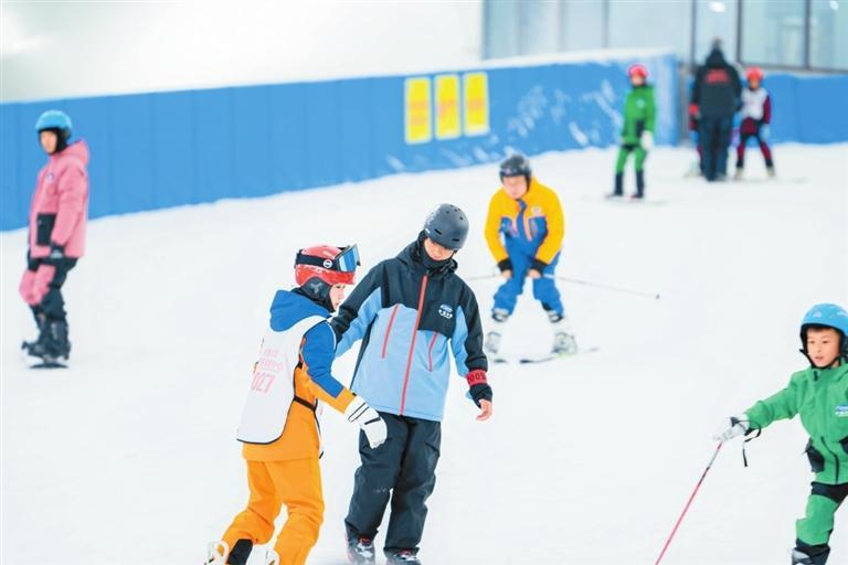 滑雪馆分为滑雪区、娱雪区和研学区。其中滑雪区建设了超百米长、20米宽的坡道,滑雪爱好者可在滑雪区体验单、双板滑的快感。