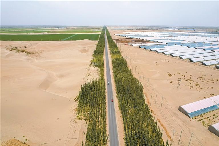 今年以来,新疆把补齐285公里“缺口”作为塔克拉玛干沙漠边缘阻击战的重点,因地制宜、分类施策,综合采用工程固沙、生物治沙、光伏治沙等科学治沙技术,在固沙阻沙的同时,大力发展具有地方特色的沙产业,助力惠民富民。