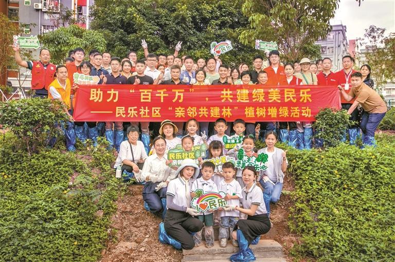 作为“绿美示范点”之一,民治街道民乐社区推进一批绿美阳台、一条幸福花街、一片“结对共建林”等“三个一”活动,将一处1476平方米的荒地打造成网红“小公园”,形成社区绿色微景观点,连接街巷景观小品成线,推动辖区绿化成林成片,绣出“百千万工程”美丽画卷。