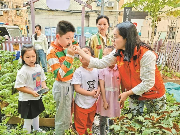 茜坑老村是以客家原住民为主体的历史厚重、生态宜居的城中村,“半亩田园”是福城街道利用茜坑老村内闲置地资源优势,打造的具有公益、教育、科普、邻里互助功能的共建花园。这里设置有种植体验区、自然科普区、亲邻打卡点、活动区、堆肥区、工具区等,多样种植林木、果树、鲜花、蔬菜等。除半亩田园外,福城街道围绕茜坑老村周边启动竹公园、水公园、露营广场、开心农场、茜坑绿道等10个配套设施提升项目,增加绿化面积51086.05平方米,极大提升茜坑老村周边市容环境和城市环境品质,茜坑老村从曾经的“脏乱差”蜕变为如今的“绿美净”,在社交平台上已成为众多网友“打卡”分享的“网红点”。“没有想到这个老村有自然营地、有老物件,在这里能够让人松弛下来,舒缓压力。”日前,市民宋先生一家专门从宝安来到茜坑老村,在志愿者的带领下走进“半亩田园”,识瓜认果,共享亲子之乐。