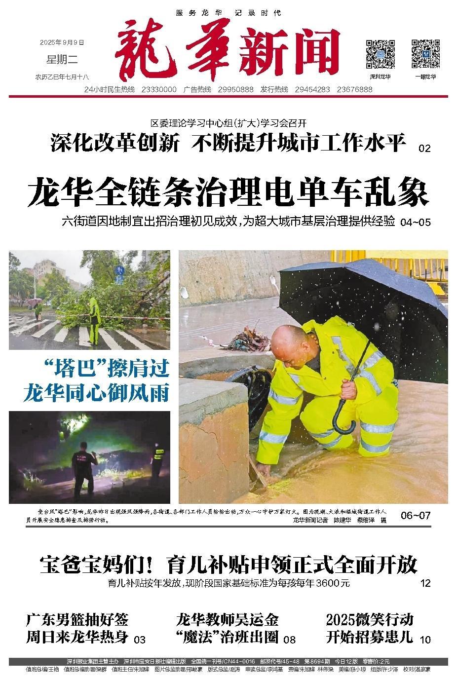 受台风“塔巴”影响,龙华昨日出现强风强降雨,各街道、各部门工作人员纷纷出动,万众一心守护万家灯火。图为观湖、大浪和福城街道工作人员开展安全隐患排查及排涝行动。龙华新闻记者 陈建华 蔡维泽 摄
